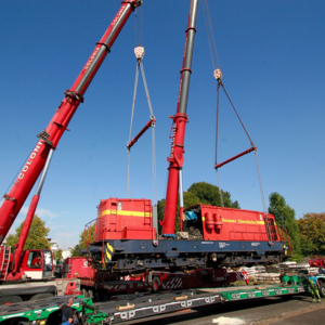 Wesseling. Eine zuletzt von der RheinCargo betriebene Lok wurde in Wesseling mit zwei Schwerlastkränen auf einen Schwertransport verladen, um sie nach Verona in Italien zu transportieren. Dort soll das verkaufte Triebfahrzeug im Sinne von Nachhaltigkeit und Ressourcenschonung aufgearbeitet und anschließend weiter eingesetzt werden.
