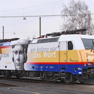 Neuss/Köln. Der Logistikdienstleiter RheinCargo schickt im Luther-Jahr 2017 eine besondere Lokomotive auf die Strecke. Eine E-Lok der Baureihe 185 wurde mit einem aufwendigen Design zum Thema „500 Jahre Reformation“ versehen und ist ab sofort im bundesweiten Schienengüterverkehr im Einsatz.